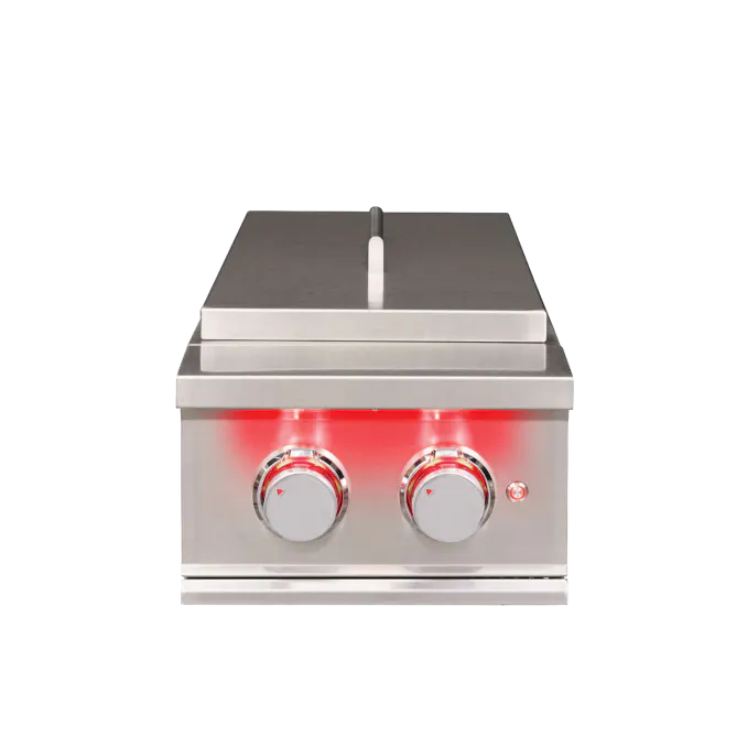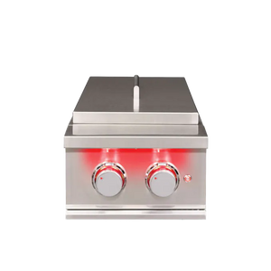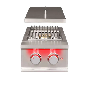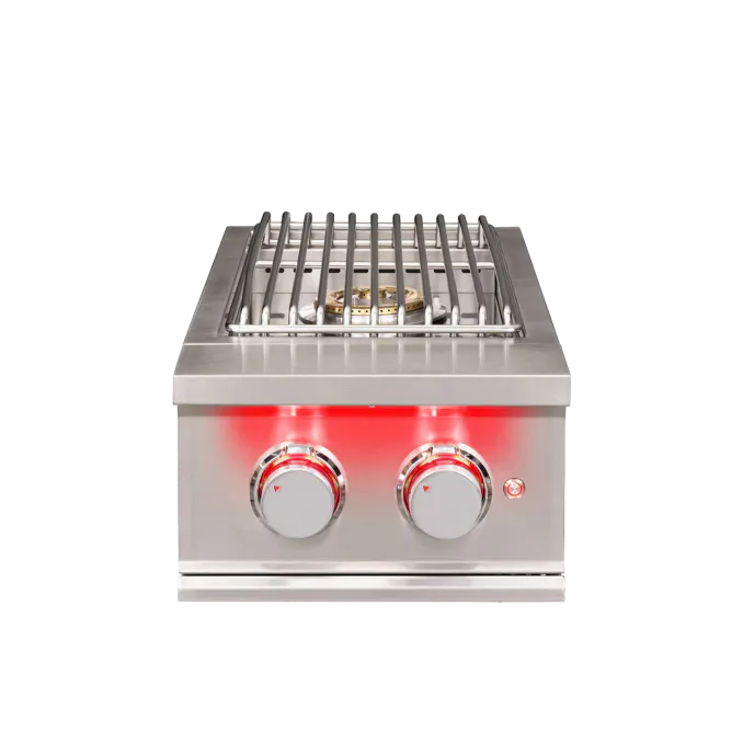 The TrueFlame Double Side Burner combines the benefits of indoor cooking with the joys of cooking outdoors, allowing you to boil, sear, and prepare finishing sauces right next to your TrueFlame Grill. With 24,000 total BTUs of cooking power, #304 stainless steel construction, and luxurious LED illumination, this unit helps complete your dream outdoor kitchen.